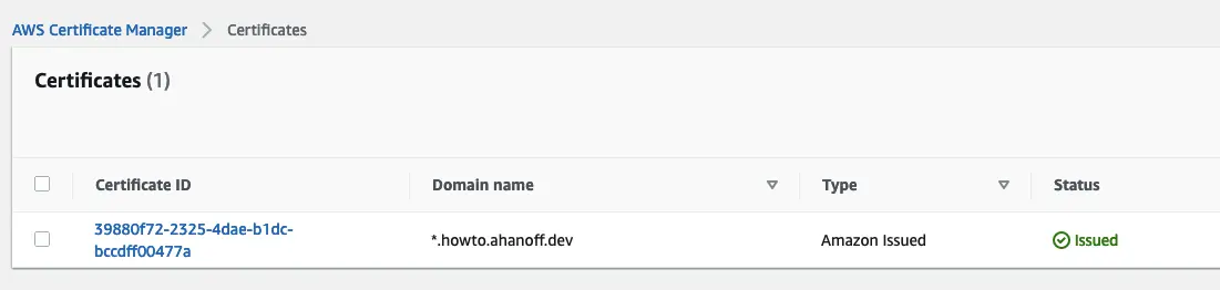 After running pulumi up you should have your ACM certificate issued and ready to use.
